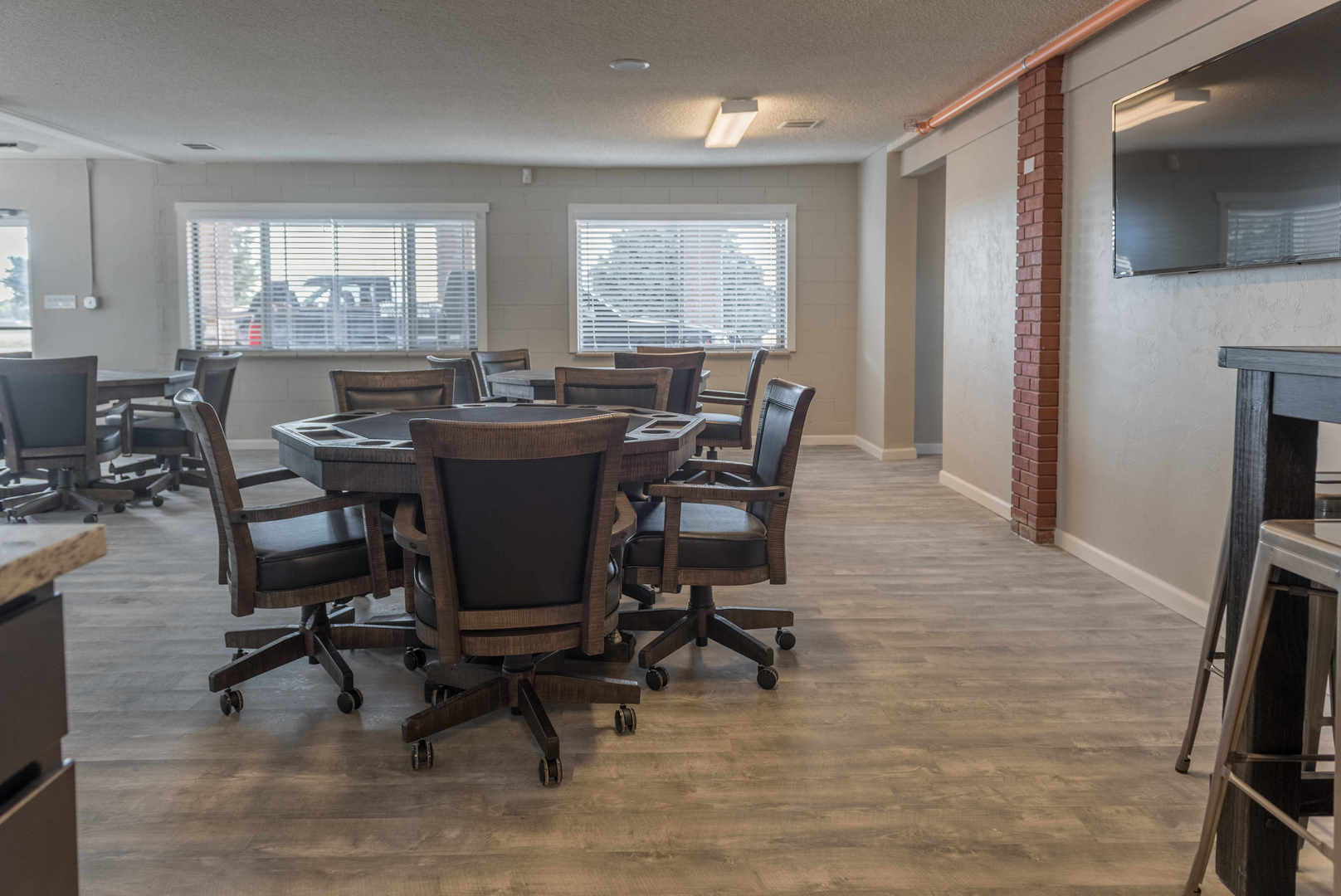 Welcome to a unique living experience in Sterling, CO. This studio apartment offers a modern lifestyle with a touch of luxury. The unit is fully furnished and features stainless steel appliances, enhancing the sleek and contemporary design. The apartment also boasts a spacious walk-in shower in the bathroom, providing a spa-like experience right at home. For your convenience, coin-operated laundry facilities are available on-site. Entertainment is at your fingertips with cable television, multiple big screen TVs, and an entertainment room complete with a poker table. Enjoy the outdoors with our outdoor dining areas, perfect for those sunny days. Ample off-street parking is available, and extra storage is also an option for those who need it. Pet lovers will be pleased to know that their furry friends are welcome. Experience the perfect blend of comfort and convenience in this Sterling, CO apartment.